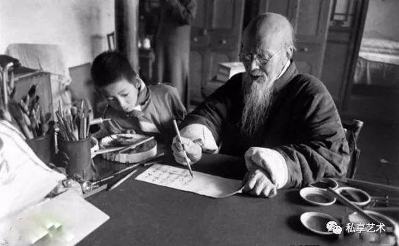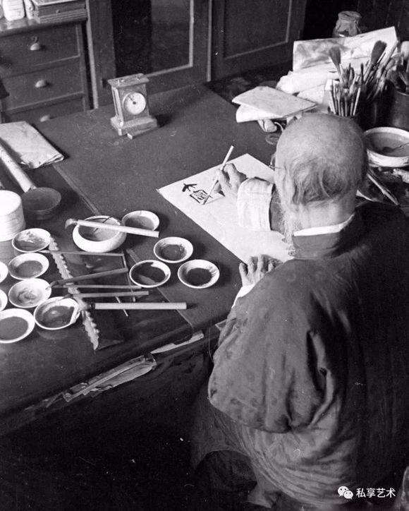 齐白石最后学李邕,以临习李邕《云麾将军碑》下的功夫最大,不仅对临,而且背临,直到能将临本与原帖套合的地步。