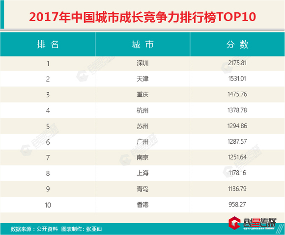 在“中国城市综合竞争力”排行榜中,上海、香港、深圳分别列前三甲,第四名北京、第五名广州。而且深圳蝉联“中国城市成长竞争力”排行榜榜首。