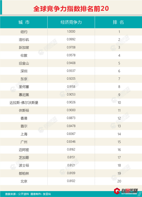 在十月底发布的《全球城市竞争力报告2017-2018》中指出,《报告》中最重要的工作之一就是通过对全球1007个城市的“经济竞争力”进行测度。而测度结果显示,深圳、上海、广州、北京分列全球第6、14、15、20名。如果你在一线城市工作,这也这意味着你在全球前top 20的城市工作。
