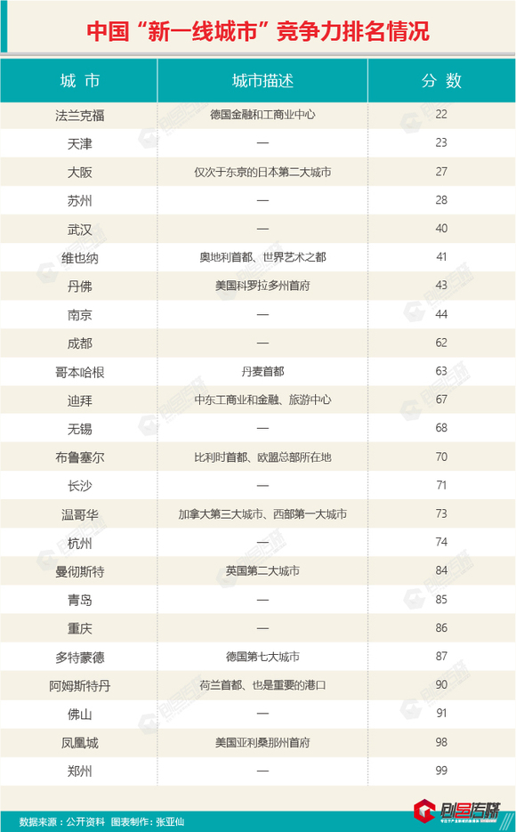 注:按照《2017城市商业魅力排行榜》,佛山和无锡并不在新一线城市之列