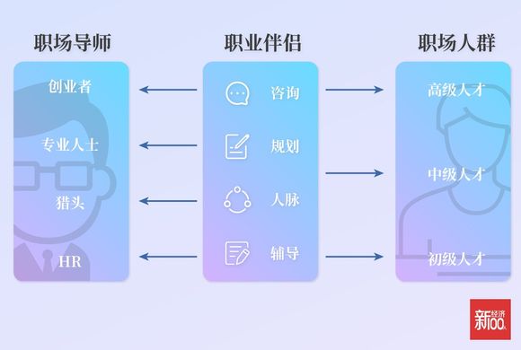 「职场成长其实最重要的是师傅带徒弟,我要把这种外企的优秀体系搬到中国的社会职场,我认为这会是中国职业领域一种新的社交方式。」传统基于互联网的职场社交过于浅薄,无法完成对于一个人的认知了解。通过职业伴随的方式,一方面帮助职业导师形成新的身份和地位,另一方面帮助求职人士拓展人脉。