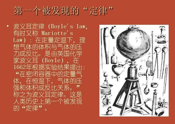 先说大家耳能详熟的波义耳定律,上篇写到胡克作为助手,帮助波义耳有效完成了波义耳定律实验。波义耳定律是第一个描述气体运动的数量公式,为气体量化研究和化学分析奠定了基础。