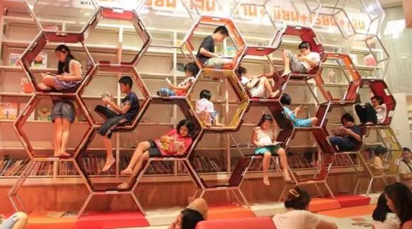 它拥有大量书籍的空间,每日最少吸引3,000人到访,尤以小朋友居多,由装潢到气氛都似足一个公园,连坐位都花心思设计成蜂巢形状,跟印象中沉闷的书店截然不同。在儿童节当天,他们还将组织一场“儿童游击队”活动,邀请小朋友们表演节目、演讲来表达自己的才能。现场还有免费供应的零食和其它小游戏。