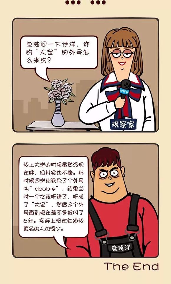 栾诗洋:不管做什么工作,你应了这个活儿,就得干好这个活儿,这个世界上没有小角色只有小演员。我的偶像黄渤,他就是从小角色开始一步步走到中国唯一一个“50亿影帝”。《开心麻花》有上百个艺人,每一个签约演员都要达到一定场次演出才会正式签约,我们是一个整体。《开心麻花》就是我们的金字招牌,我们演员的任务就是满足观众的期待。这也是为什么《开心麻花》是被观众认可的一个品牌,而不是某个特定的人。
