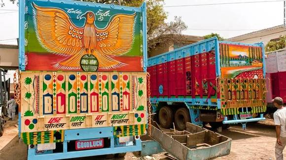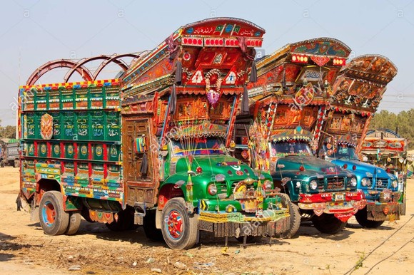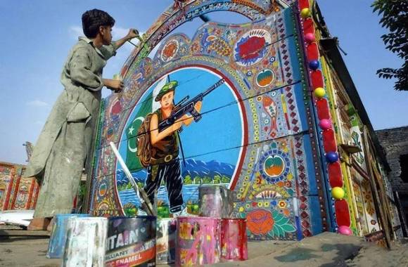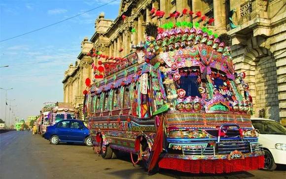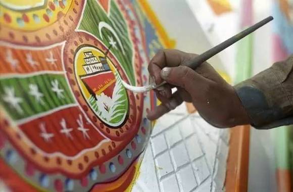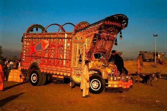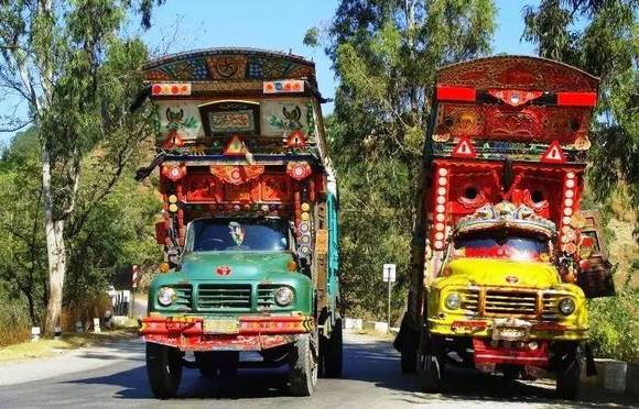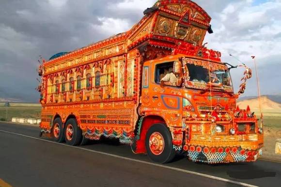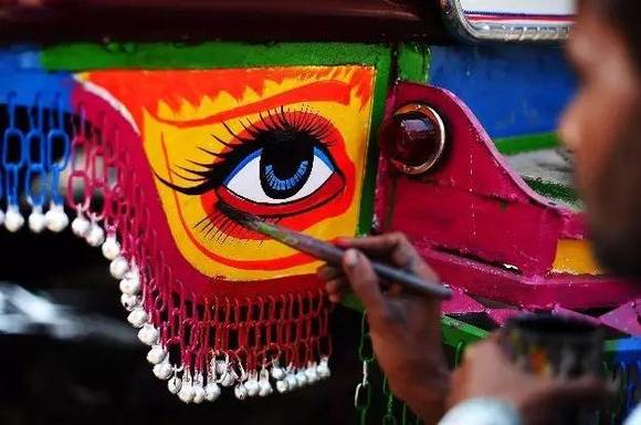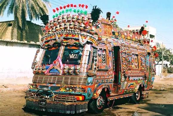 将交通工具绘满各色图案是巴基斯坦人骨子里的热情外露,如今它已经变为一种特殊巴基斯坦民族艺术。