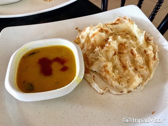 网卷饼因其形状像网而得名,可以与咖喱鸡肉一起享用,也可以蘸着糖浆什么的,口感松软,带着油香。