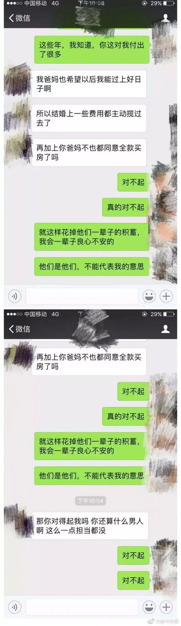 孰是孰非,读者可以先看看这对情侣的聊天记录: