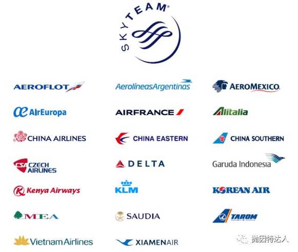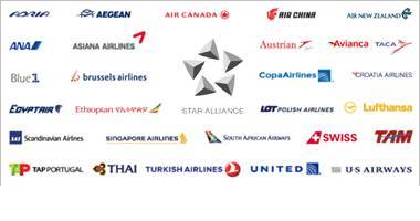 各大联盟的主要常用的航空公司如下: