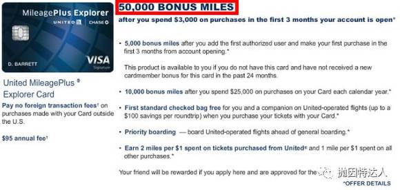 通过此信用卡消费还可以每消费1美元获得1美联航的里程。