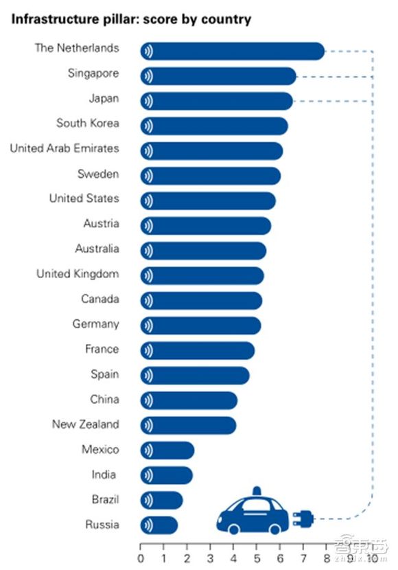 德国有力的政府投资和强大的工业和技术创新使其位列第六,拖后腿的原因主要在于消费者还没有被自动驾驶的利益说服,4G覆盖率也比较低。