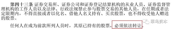 《证券法》第43条里提到“任何人在成为前款所列人员时,其原已持有的股票,必须依法转让”,也就是蒋政所持有的股票必须卖出。