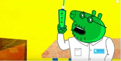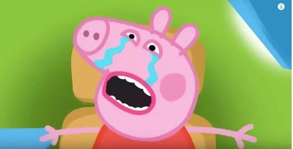 画面上,一位有猪外形的浑身青绿的医生,拿着一根手臂粗的针管,对小猪佩奇反复地扎来扎去,佩奇疼得不断惨叫、哭泣......