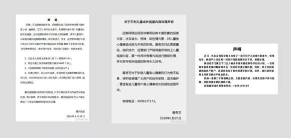腾讯、爱奇艺、优酷的处理声明