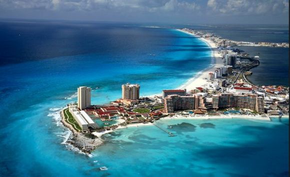 坎昆:坎昆在加勒比海北部,这里风光旖旎,海水蓝的沁人心脾。坎昆有世界最好的沙滩,每年无数人来这里享受加勒比的阳光和海浪。