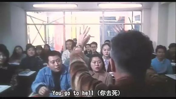 “学英语”这场戏显示出陈可辛的导演调度能力,从电视机到教室,然后是教室外,里外每一个人的动作和出声都是有节奏感的,杜可风的教学像指挥一样亦是充满节奏感。