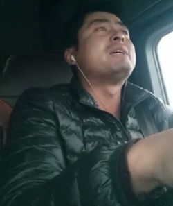 (视频截图:卡车司机边开车边哭诉丢油这件事)