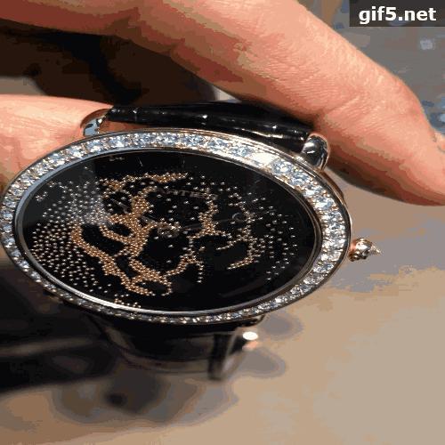 创意独特,价格不便宜,限量30枚,售价近80万。想象一下戴着这款表一定不会无聊,调整手腕观察豹子显现或者消失,就能玩上半天。