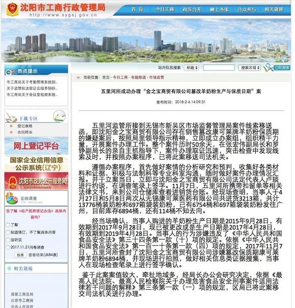 五里河监管所接到无锡市新吴区市场监督管理局案件线索移送函,即沈阳金之宝商贸有限公司存在销售篡改康可莱牌羊奶粉保质期的嫌疑案后,按照局里领导指示精神,立即成立办案组,组织精干力量,开展案件办理工作。整个案件历时50余天,在张宏伟副局长和罗铮副局长的亲自主抓指导下,案件办理取证迅速,突击检查中发现线索及时,并按照办案程序,已将此案移送司法机关。