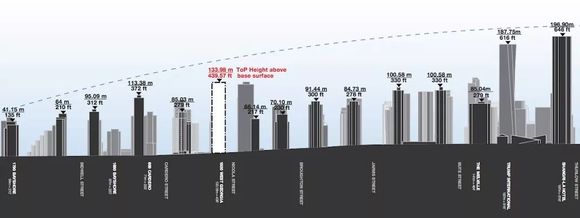 这栋大厦从2015年开始设计,原计划51层100米高,但有人认为这个高度破坏了温哥华天际线的等高排列,所以被推翻了,最终的方案是43层,容积率也从11.47降到了10.82,这意味着每平尺的售价又要提高了。