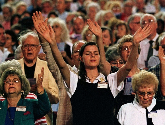 资料图:葛培理在1996年的一场布道会上。来源:视觉中国
