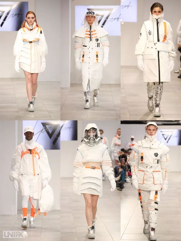 将未来感与实穿性的时装结合希望借此说明人们进入太空探索的最终是自己的内心,所谓的神秘并不产生自未知的外部空间,而是来自人的存在本身。”