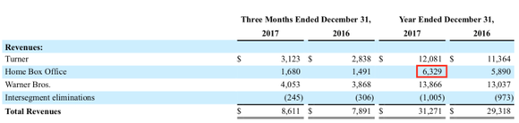HBO 2017年收入为63亿美元,较上年增加了7%。其业务中,订阅费收入由于订户数在美国国内及全球范围内的增加而增长了11%