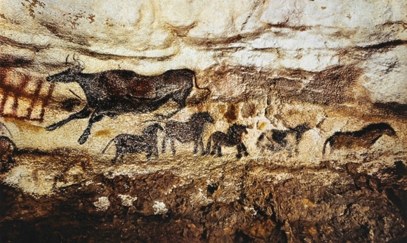 如果你在现场观看岩洞艺术——我曾经在Lot地区的Pech Merle岩洞和Cougnac岩洞,以及比利牛斯山脉的Niaux岩洞里观看过——你会发现它包括两种或者三种类型。有各种各样的神秘抽象符号,比如点和曲线;有让人难忘的“人类”手掌;还有那些栩栩如生到难以置信的猛犸、马、野牛、狮子的形象——大多数非专业人士提到“岩洞艺术”,想到的就是这些作品。