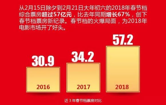 7天票房57.2亿!2018年春节,比红包大战更值得人们津津乐道的绝对是春节档的亮眼票房。