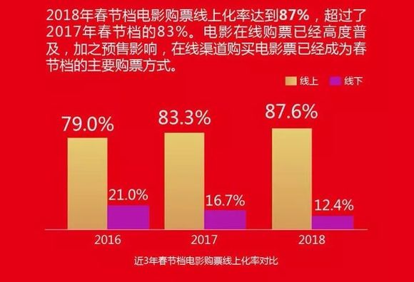而87%的线上购票率、通过预售实现多方共赢,也代表着以猫眼为代表的互联网电影平台进入到一个全新的发展阶段,为产业深度赋能。