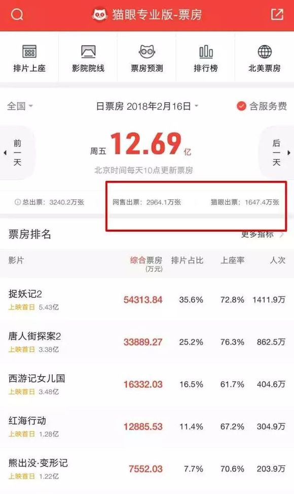 诚然,今年的春节档猫眼可谓覆盖了所有的主力影片。其不仅参与《捉妖记2》的主发行方、《红海行动》的联合发行方、《熊出没变形记》的联合出品和联合发行,《唐人街探案2》《西游记女儿国》也都与猫眼有营销合作。