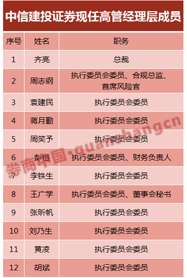 公开资料显示,齐亮曾于1993年至2006年在中信建投证券及其前身华夏证券工作,长期负责经纪业务。2007年至2012年,齐亮在中国银河(10.060, 0.04, 0.40%)证券担任副总裁、公司党委委员,也主要负责经纪业务。