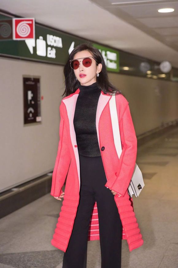娜扎一身风衣仔裤搭配粉色袜靴现身机场,