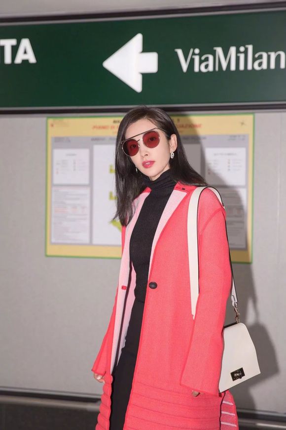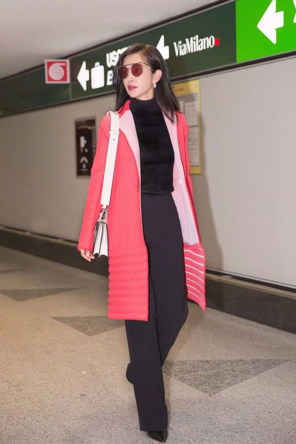 刘诗诗搭配麂皮绒雾霾蓝外套启程米兰时装周,