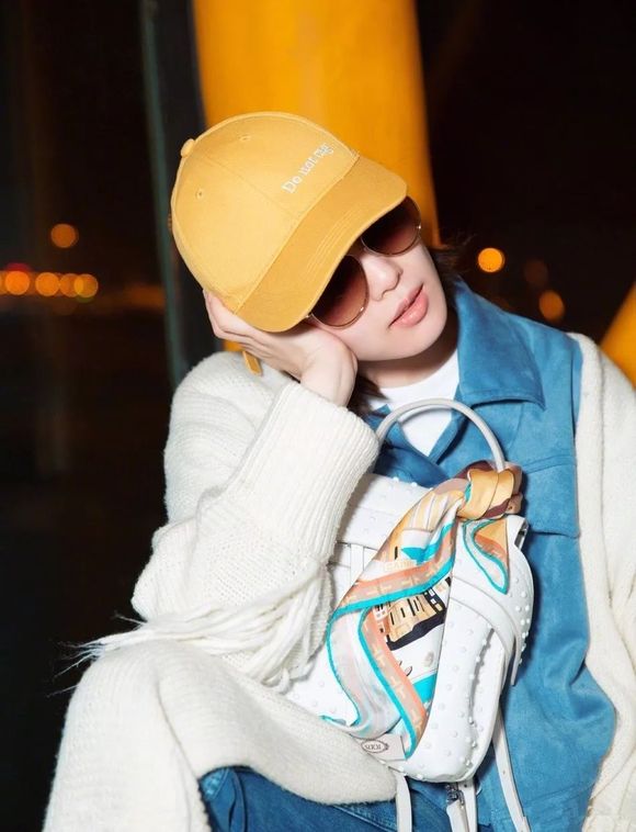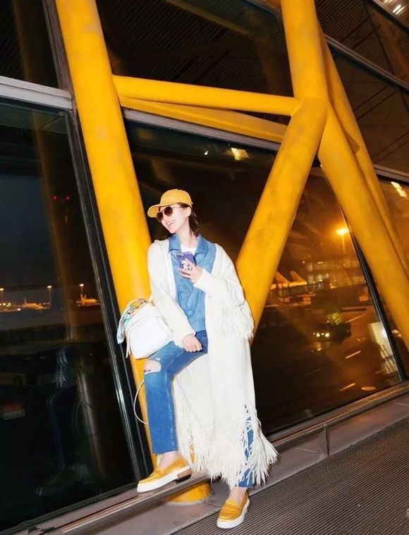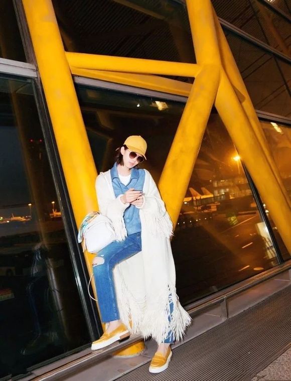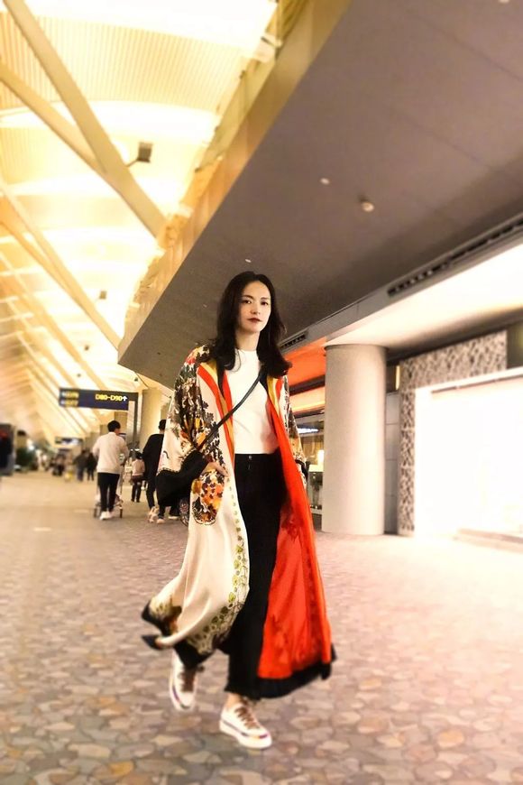 姚晨身穿白色印花外套现身机场,