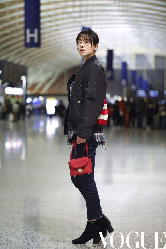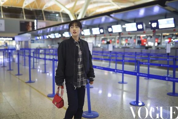 马思纯身穿利落又不失设计亮点的夹克,脚着花漾跟编织踝靴启程前往米兰。扎着小马尾戴着金属框圆形眼镜的小马姑娘,自然随性,俏皮可爱。