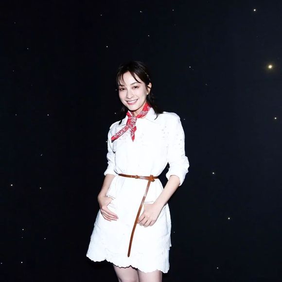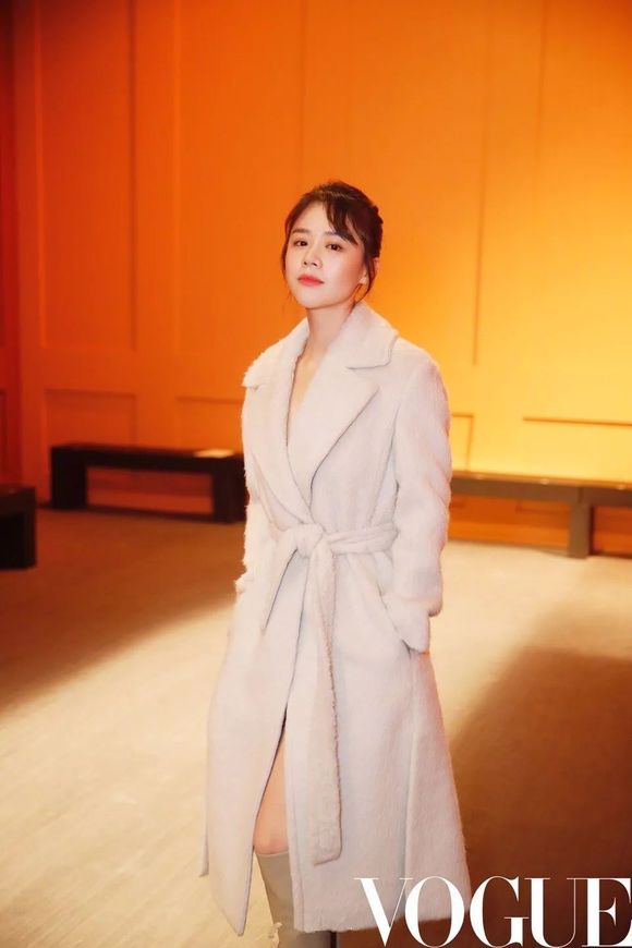 马思纯身穿一袭白色大衣现身秀场,