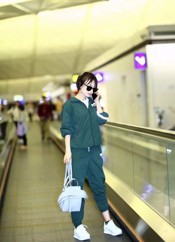 吴昕吴昕身穿墨绿色连帽卫衣运动服搭配墨镜,脚踩小白鞋启程前往米兰时装周,简约造型清爽又休闲。
