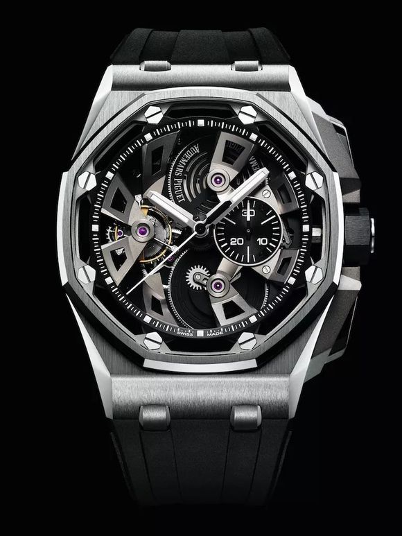 同时,爱彼推出两款全新皇家橡树离岸型陀飞轮计时码表限量纪念表,一款为不锈钢表壳,另一款则采用18K 玫瑰金材质。