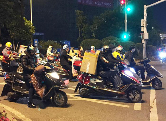 “天天堵,风雨无阻。这些人白天睡觉,一到半夜就都出来拿货。”当地出租车司机嚼着口香糖介绍。车窗外,汽车鸣笛声此起彼伏,午夜盛景扑面而来:杂乱行驶的电瓶车和奔跑着的人,车后、手中满是盒子,小鞋盒套着大鞋盒,大鞋盒套着纸板箱……