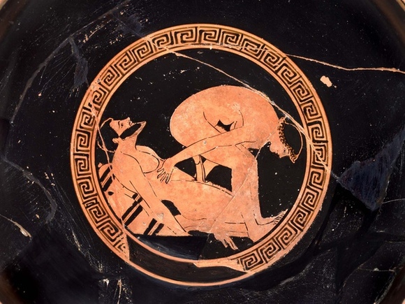 一言以蔽之,在古希腊和罗马艺术中,性无处不在。在公元前五、六世纪的红彩或是黑彩陶器上,含有性意味的露骨形象比比皆是,令人大开眼界。