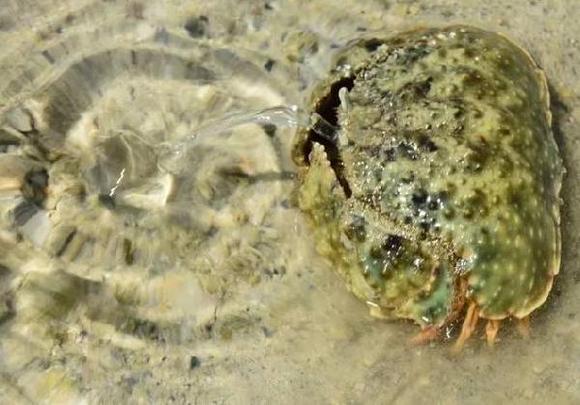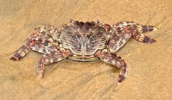 印度天王蟹,喜欢藏在沙子里,体表特征和花纹跟褶痕厚纹蟹很相似,但是栖息环境不一样,将其清蒸是最好的美味。