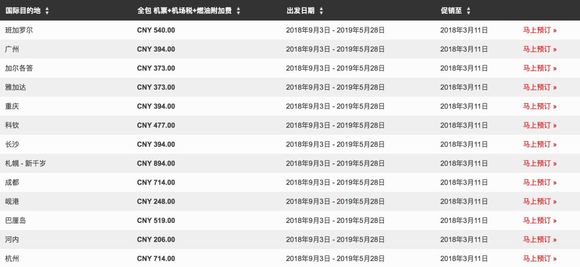 返程以曼谷为例,价格也是相当美丽(这里仅列出部分城市,基本上国内各大热门城市都不缺):
