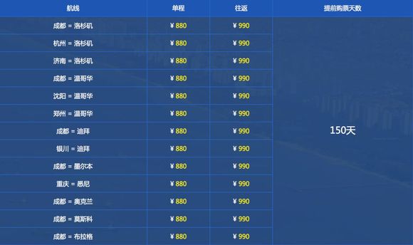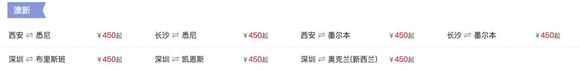 画一下重点:不含税的情况下,成都、重庆、长沙多地往返洛杉矶900起,上海往返布鲁塞尔750起,西安、长沙往返悉尼或墨尔本均为450起,4~9月正是澳大利亚的旅游旺季,算是非常有诚意的年度大促了。