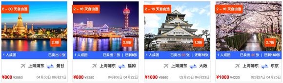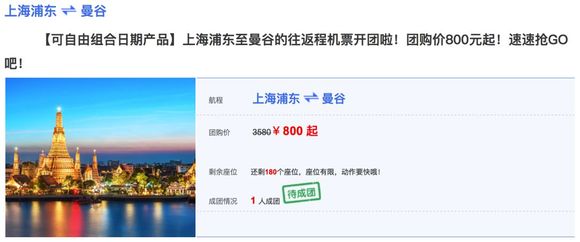 国航和其他航司的画风略有不同,却也是我最喜欢的。国航开通了一人成团的团购,从上海、广州、北京、重庆等多地出发,目的地既有曼谷、大阪,也有雅典、温哥华。