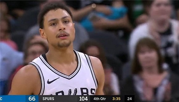 从下半场一开始,马刺队一直打得是顺风球,从米尔斯开局用一记非常强势的三分球展现出球队的状态,此后马刺队也是打得极为顺畅,在第三节中有两次成功抢断对手的发球,再加上吉诺比利极为轻松地抛投得分。