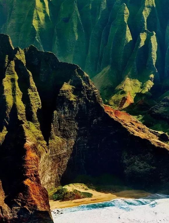 纳帕利海岸(Napali Coast)是夏威夷群岛上最壮观的海岸线之一。无论是沙滩,还是巨大的海浪亦或者是火山口,夏威夷都有许多让你前往的理由。而纳帕利海岸不仅拥有直插天际的碧绿悬崖,和流下深邃狭窄山谷的层叠的瀑布,还可以俯瞰太平洋的浩淼全景。