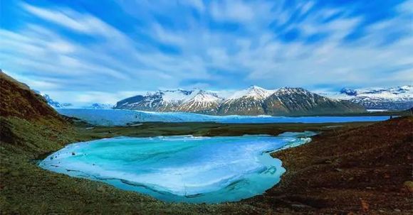 洁白晶莹的冰川下是碧绿的灌木丛以及漆黑的火山熔岩山,史卡法特国家公园集冰川、火山、峡谷、森林、瀑布为一体,景色壮观,是冰岛面积最大的国家公园及自然保护区。