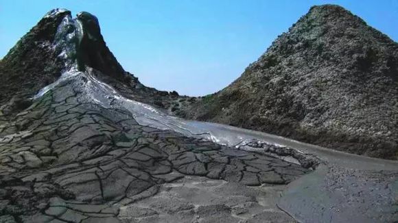 阿塞拜疆,有三百多座迷你泥火山。当地人认为这种泥浆具有药用价值,人们喜欢脱下衣服进行泥浆浴。