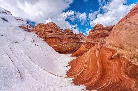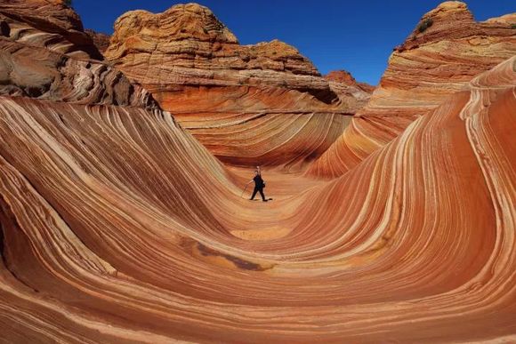 亚利桑娜州北部接近犹他州南部地界的梦幻峡谷。血红的砂岩如海浪翻腾,联绵不断的“波浪”,有一种身处外星世界的感觉。整个区域都由美国国土局进行管理,几乎都有配额限制,不是想去就能去哦。