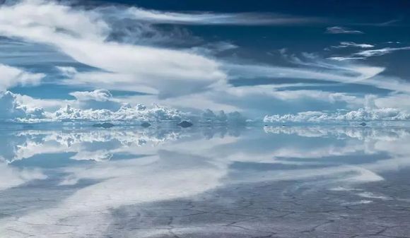 它能完全将天空倒影在盐层上,壮美之极,被人们称为,“天空之镜”。尤其是雨后的湖面,反射着令人窒息的天空景色,好似不是地球上的美丽。